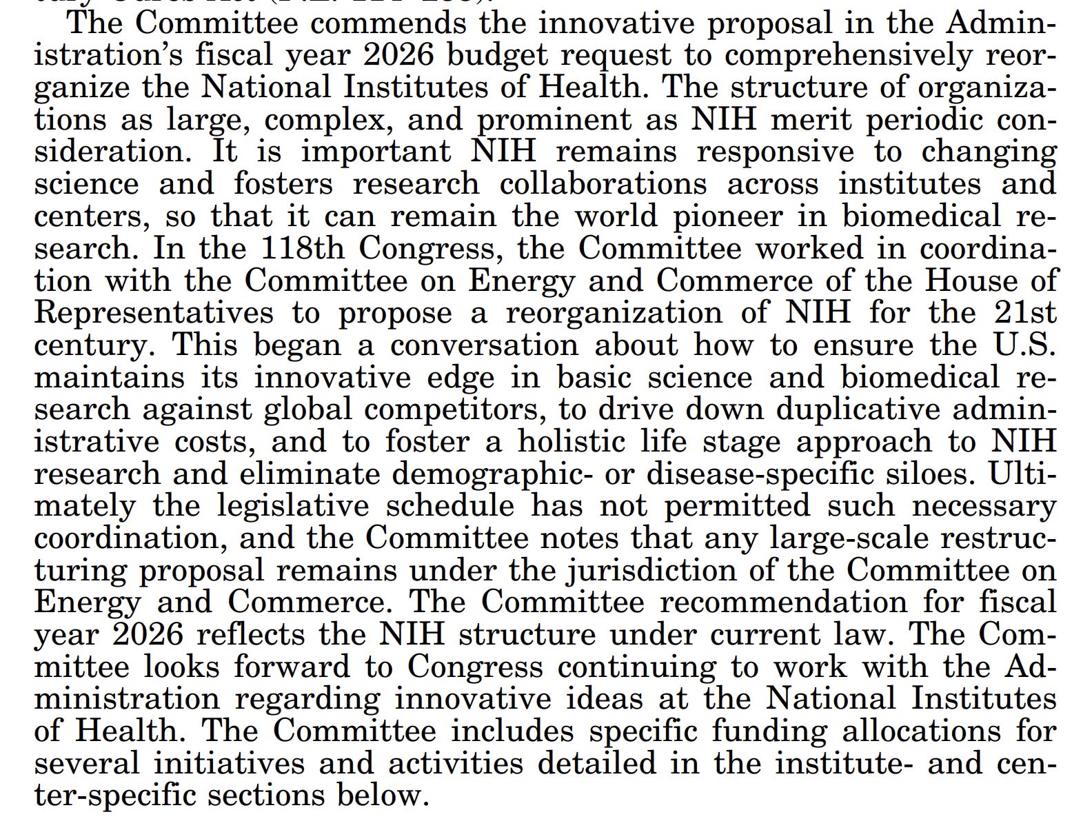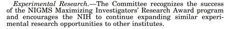 As a reminder, the binding report language from FY24 directed NIH (using mandatory language) to explore expansion of this program, and to report back to the Appropriations Committee within 1 year (which would have been March 2025):