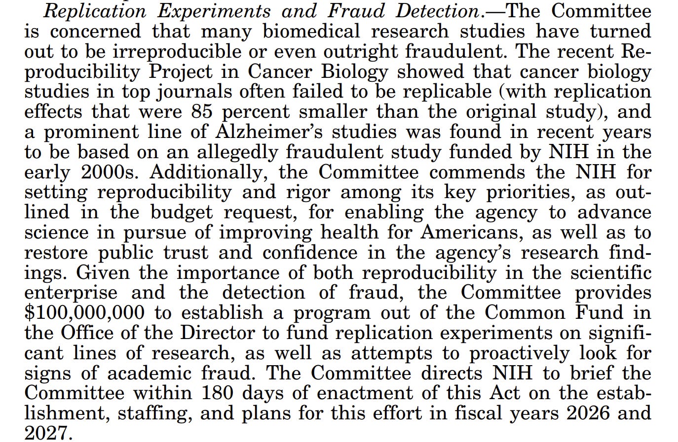 Fourth, as to scientific replication, the House has continued to support language from FY2024 (and increased the budget!):